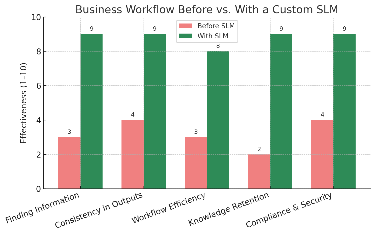 Public models are general and shared. Your SLM is private, trained on your data, tuned to your voice, and governed by your controls.